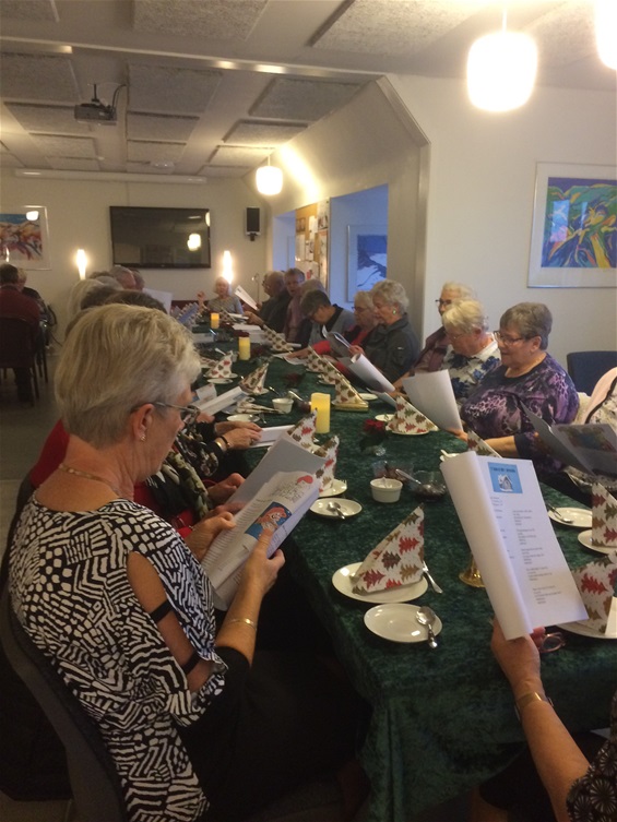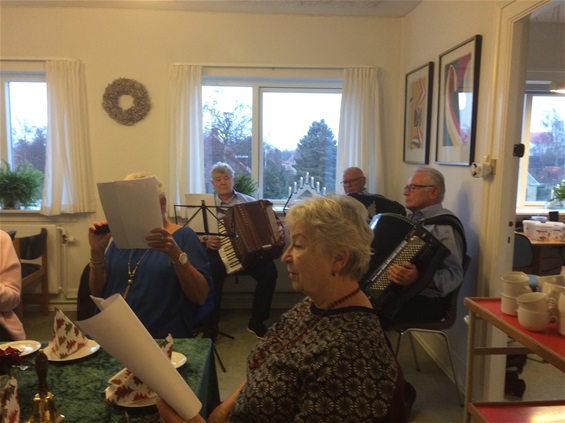 For syvende gang spillede de lystige spillemænd, Preben, Karsten og Børge alle de dejlige Julemelodier på harmonika. De ca. 40 fremmødte Aktive Pensionister sang med på alle melodier. Det gav os en følelse af at julen endnu engang nærmer sig.