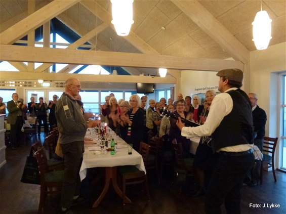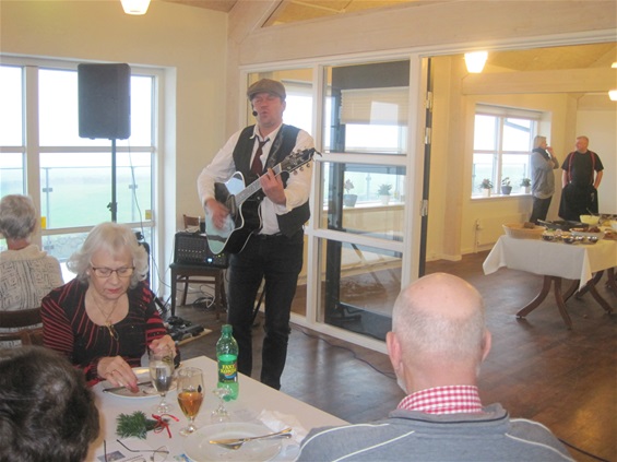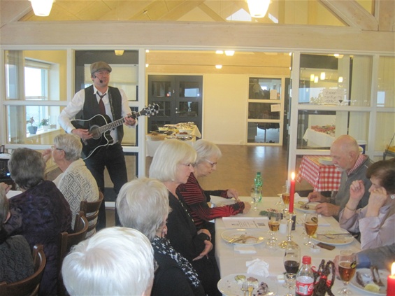 Forretningsudvalget havde en overraskelse i ærmet: Vi havde bestilt en Kim Larsen kopi, til at underholde, Anders Munck, han gjorde det sjovt og frisk. Undervejs var der mulighed for at synge med.