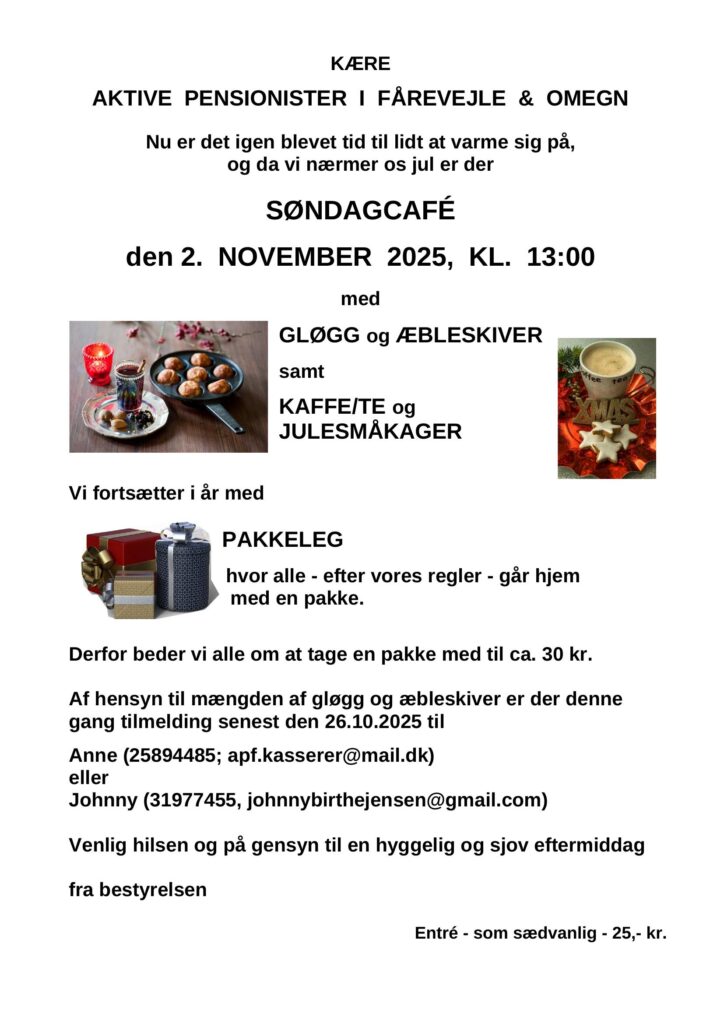 Søndagscafé 02.11.2025 artikler Forrige produktSøndagscafé 07.09.2025 Måske kan du også lide Søndagscafe 6 OKTOBER kl 13.00. Så bliver det italiensk 17. september 2024 Søndagscafé 03.11.2024 14. oktober 2024 Søndagscafé 05.05.2024 18. april 2024